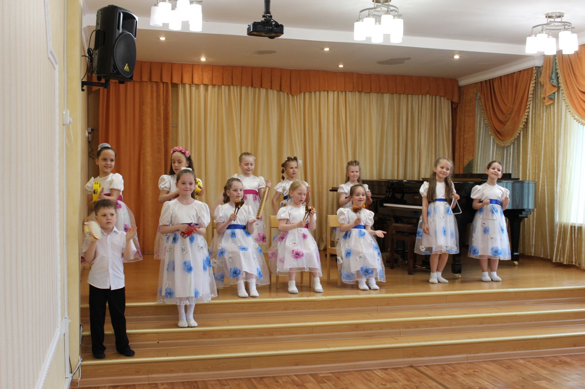 Дошкольники пели песни, танцевали и играли на шумовых инструментах. В концерте так же приняли участие и юные учащиеся музыкального и хореографического отделений.