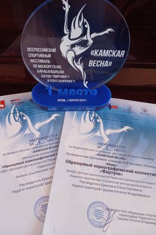 •           7 апреля 2024 г. образцовый хореографический коллектив «Фортуна» Сылвенской детской школы искусств принял участие во Всероссийском спортивном фестивале по Батон твирлингу и мажореткам «Камская весна», организатором которого выступила Федерация спортивной хореографии России, Федерация спортивной хореографии Пермского края.