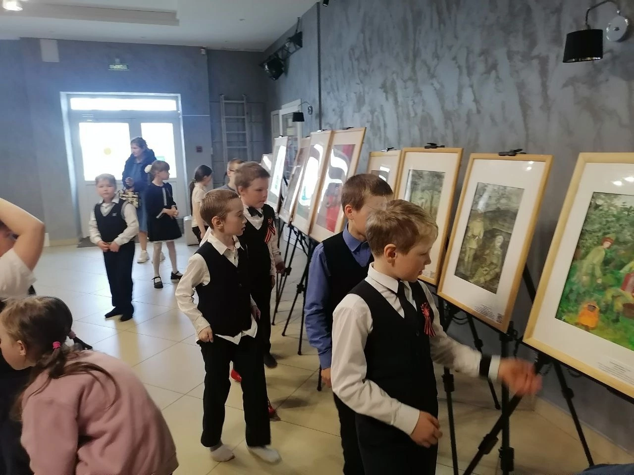 В фойе Дома культуры была организована передвижная выставка работ учащихся старших классов «Война глазами детей», отделений изобразительного и декоративно-прикладного искусства.